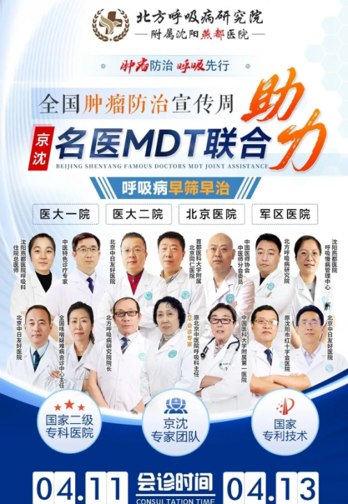 京沈专家号抢约!全国肿瘤防治宣传周在即,4月11日至13日京沈名医MDT联合燕都助力呼吸病早筛早治!